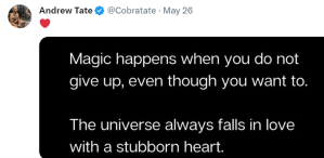 Yes, Tate can be described as assertive and provocative. Yes, he possesses a dry sense of humor that many fail to grasp, leading them to mistakenly interpret his jokes as his definitive beliefs, without delving into the deeper meaning and substance behind his words.